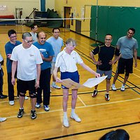 Winchester Badminton Club members, both current and past, honored their currently oldest playing member on Tuesday, January 28, 2014, presenting Phil Bainbridge with a lifetime free membership and party. Phil turned 88 years a few days earlier and has been playing in the area for 50 years. Phil had the pleasure of playing with many past players from Weston, Needham, Natick, Wellesley, and of course Winchester. Well over 50 players attended to honor him.